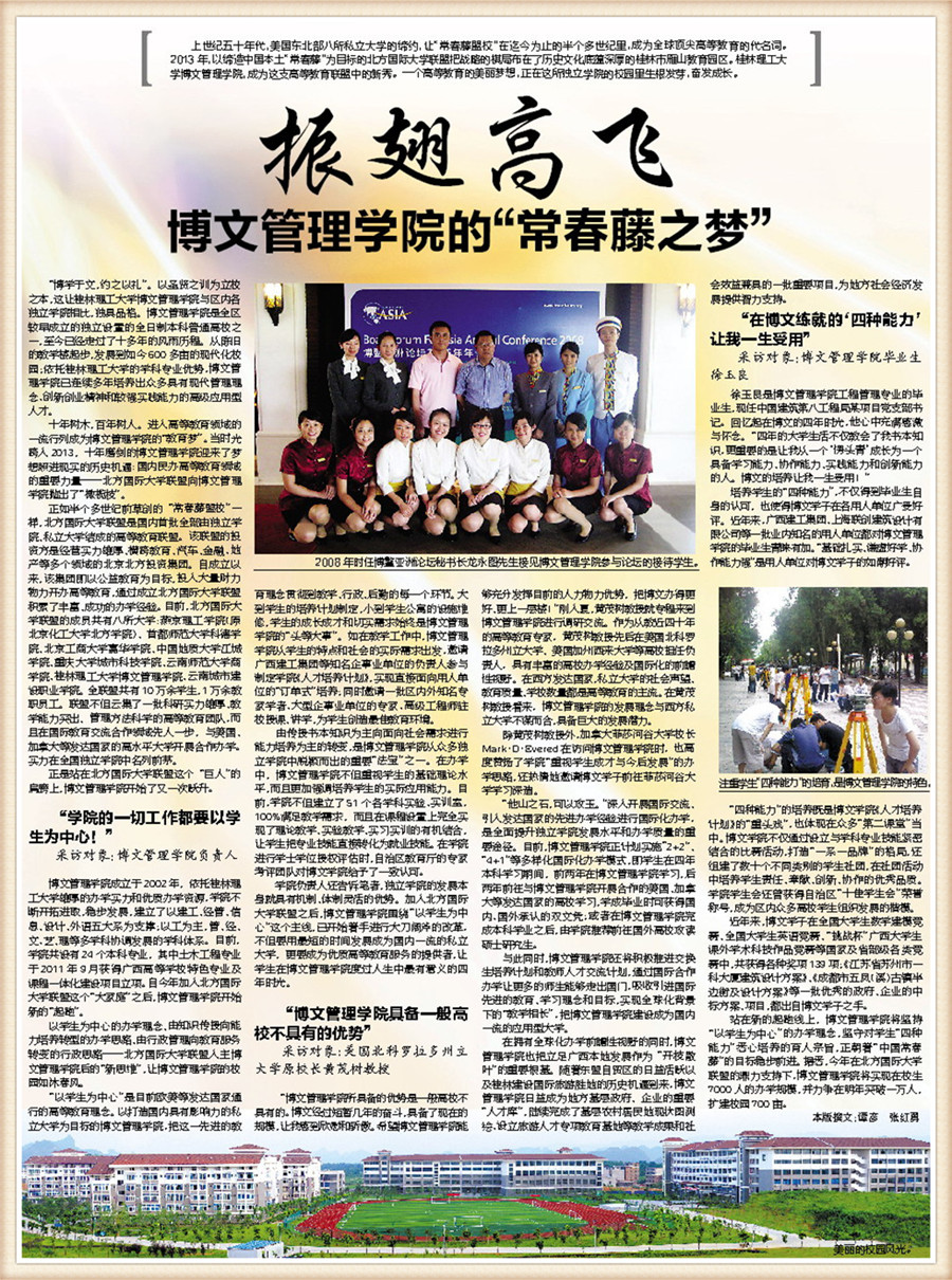 振翅高飞:博文管理学院的“常春藤之梦”【广西日报】、【南国早报】、【桂林晚报】对我院专题报道