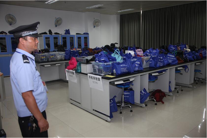 我区对评卷场所实行严格管理,不允许无关人员入内,评卷员不得携带无关物品进入评卷场所。在评卷场所楼外,四周已被警戒线“包围”起来。大楼入口处则设置了安检关卡,安排专人值守。评卷教师必须佩戴通行证,核对身份后才能通过身份验证关进入评卷场所的大楼。接着,值守人员会使用金属探测仪对评卷教师进行物品检查,与评卷无关的物品,如手机等通讯工具、相机、U盘和MP3等有存储功能的电子设备以及手袋等均须放置在物品存放篮中,不能带入评卷区。