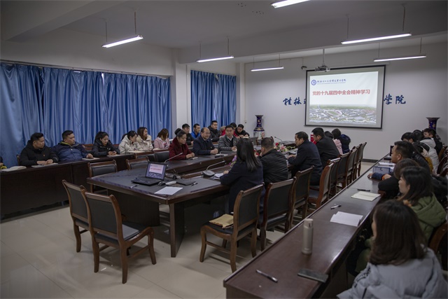 为学习宣传贯彻党的十九届四中全会报告和习近平总书记系列讲话精神, 12月3日下午,我校在3324会议室召开十九届四中全会宣讲大会。校长王金叶,校党委书记金飞,校党委副书记邓雪梅,各二级学院党总支书记,师生党员代表参加此次会议。会议由金飞书记主持。