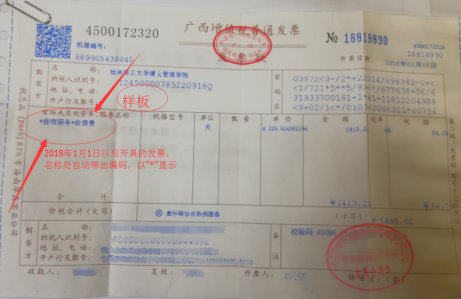 请各位老师认真核对2018年1月1日以后开具的发票,名称前必须带有“*类别*”,如无请要求对方重新开具。后附样板。