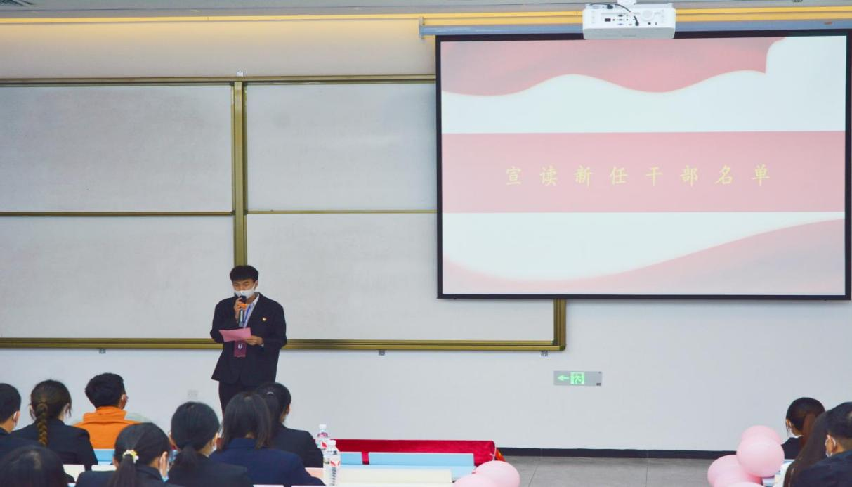 会议第三项,东盟校区党建管理服务中心负责人陈星仁宣读新任干部名单,同时也表达了对新一届学生干部在今后工作中的期望。