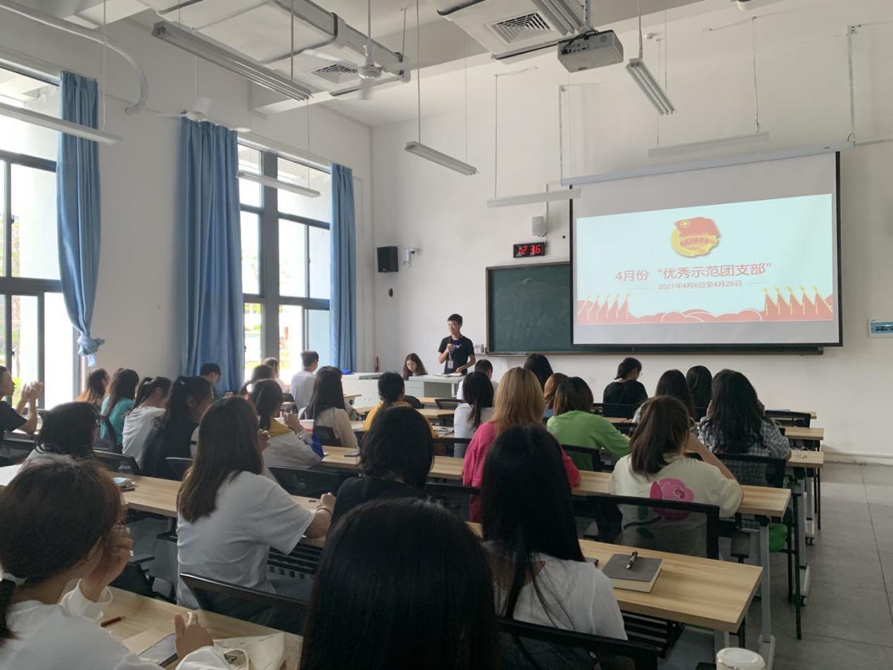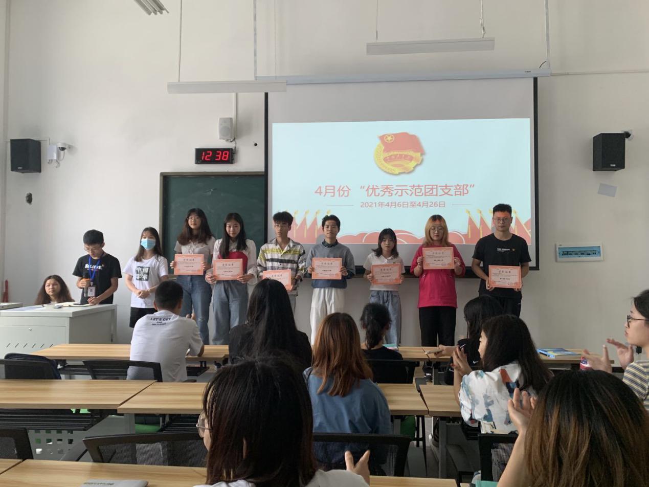 会后,南宁校区分团委学生副书记周雅慧为4月份荣获“优秀示范团支部”的班级颁奖,获奖班级有18级电子商务3班,18级环境设计12班,20级财务管理1班,20级财务管理2班,20级产品设计3班,20级汉语言文学9班,20级社会体育指导与管理5班,20级视觉传达设计6班。