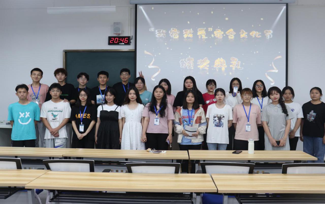 最后,主持人请所有获奖宿舍代表上台合影留念,同时表达了对宿管委向上发展的美好愿景,最后主持人宣布颁奖典礼结束,全体人员有序离场;本次宿管委举办的“我宿我秀”宿舍文化节活动亦旨有效引导同学们创造一个干净整洁、温馨和谐的宿舍环境,提升了同学们的主观能动性,同时让同学们在活动中相互理解、加深了舍友间的感情,为今后的大学生活创造了良好的环境。