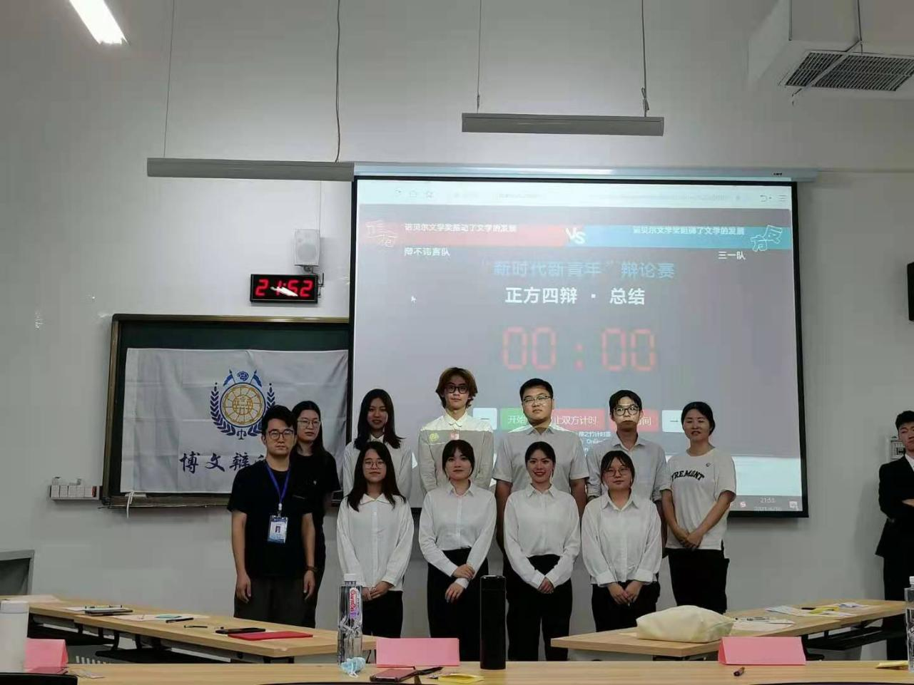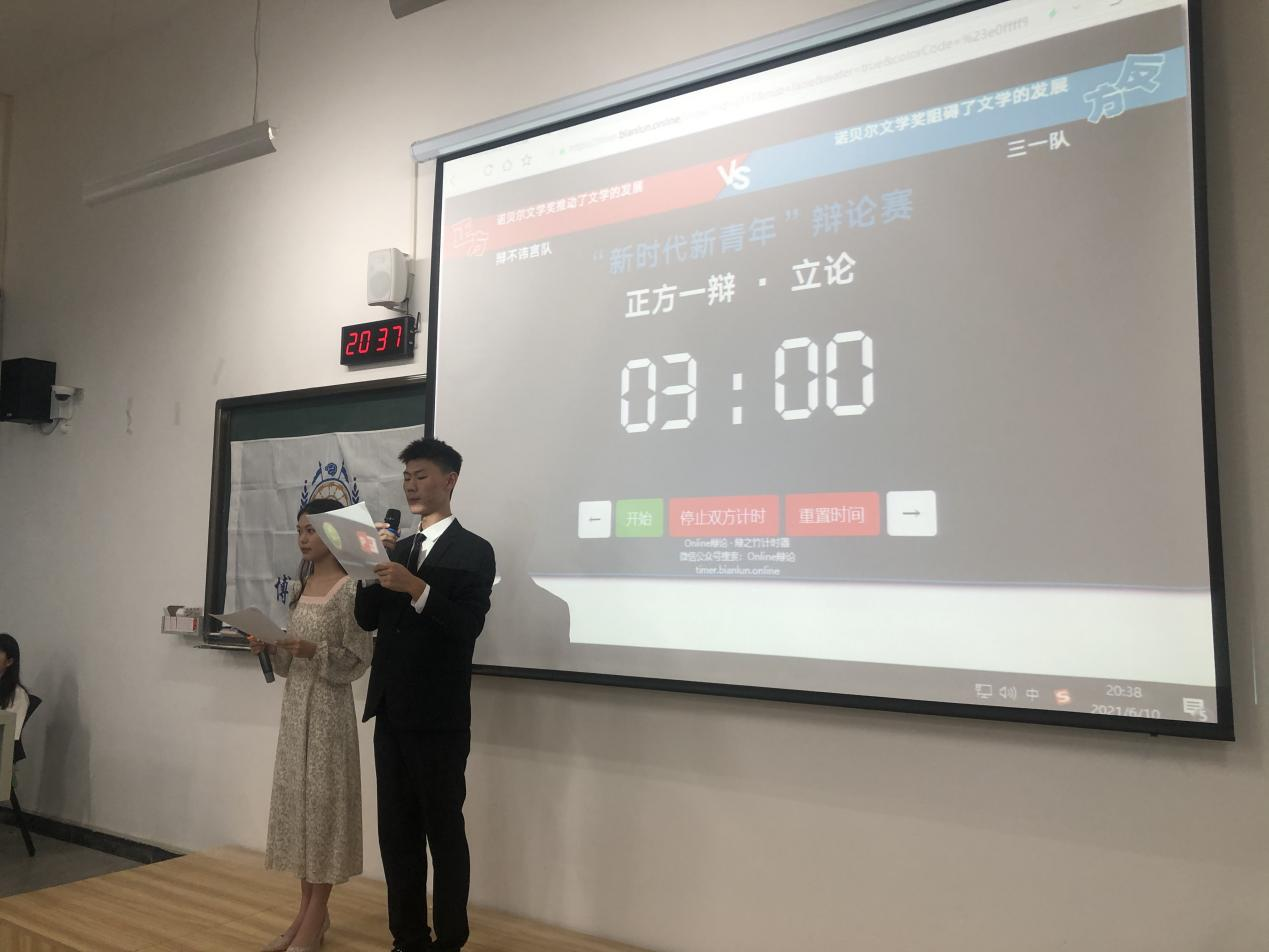 6月10日晚,南宁校区辩论社于教学楼A4102开展了一场以“诺贝尔文学奖阻碍/推动了文学的发展”为辩题的辩论赛。大学生社团联指导教师葛伟老师、辩论社指导教师谢莲花老师及教学部梁敏华老师担任评委,辩论赛由艺术团的冯晓晴和李浩同学主持。