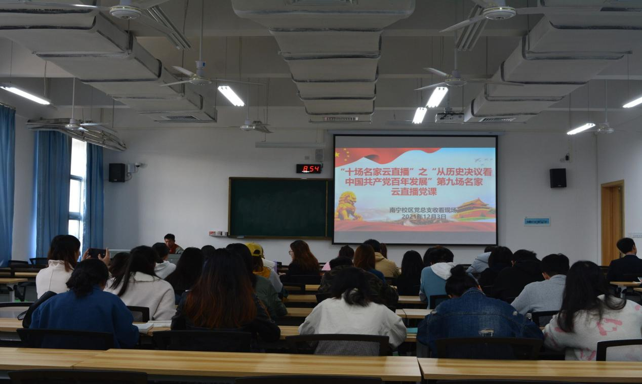 12月3日上午,东盟校区师生党员实时收看了“十场名家云直播”之“从历史决议看中国共产党百年发展”云直播党课。