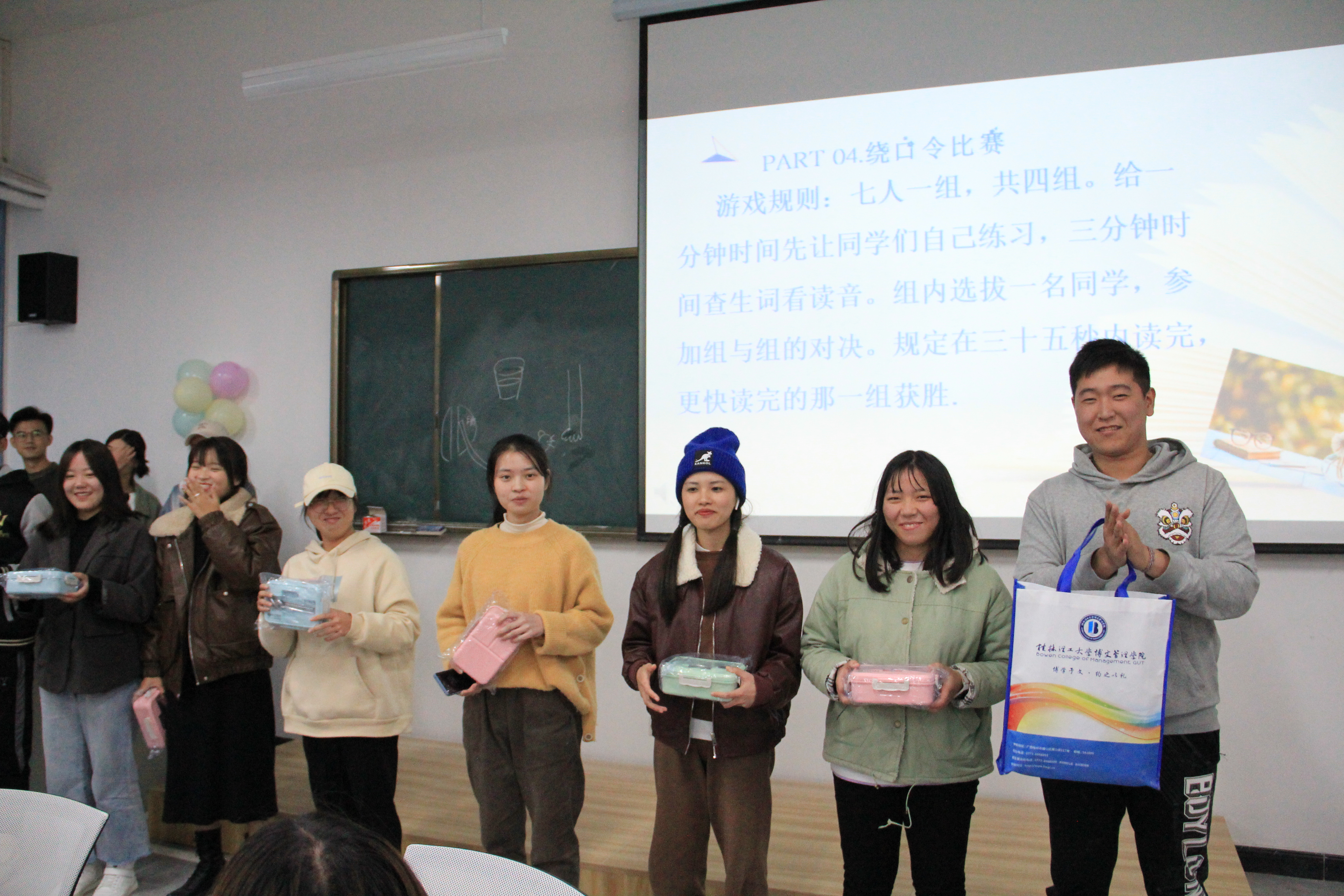 本次活动的主题是心有灵犀与绕口令。在心有灵犀活动中,同学们积极用英语交流,既加深了对单词的理解,又提升了口语能力;在绕口令比赛中,同学们斗志昂扬、激情澎湃,唯恐落后。活动营造浓厚的英语学习氛围,激发同学们学习英语的热情,活动在同学们热烈的掌声中圆满结束。