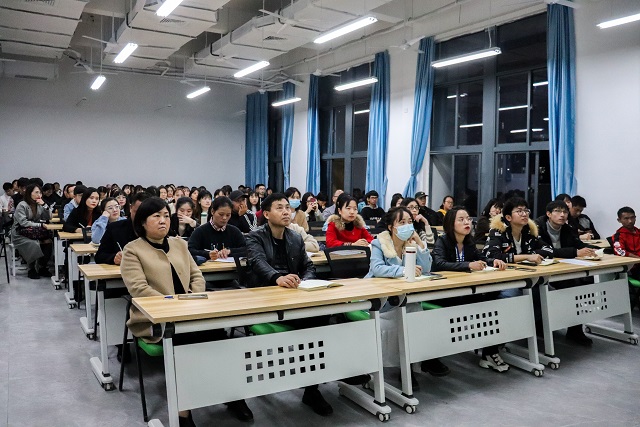 讲座会上,王教授结合自身多年的理论研究和实践经验,为师生呈现了一场精彩的讲座。他指出,老师们上好一堂课需注意态度,方法,细节三方面内容;要做好课前、课中、课后三环节的安排,尤其是课前做好读、听、写的准备。他还阐述了如何授课及如何进行课后教学反思等内容。
