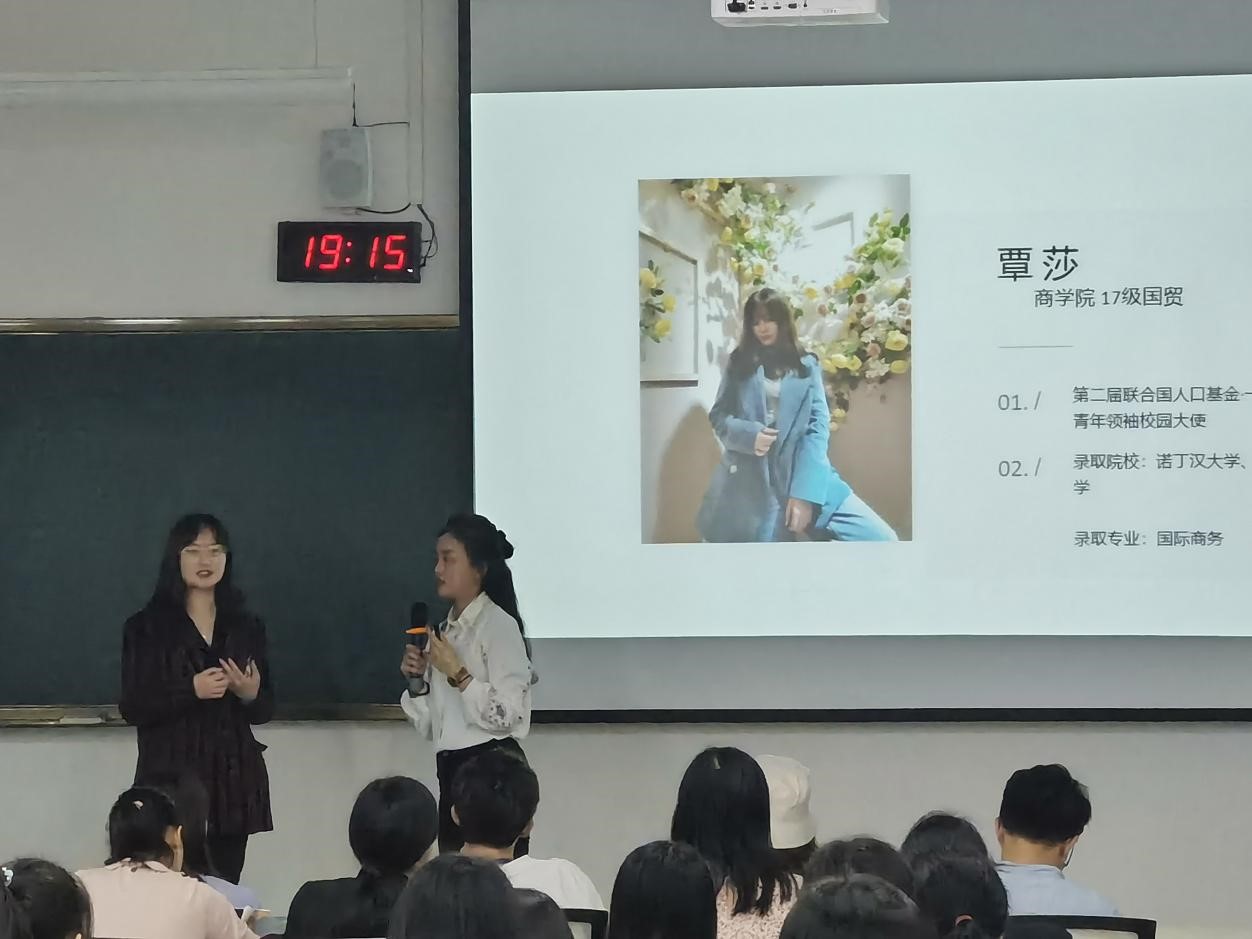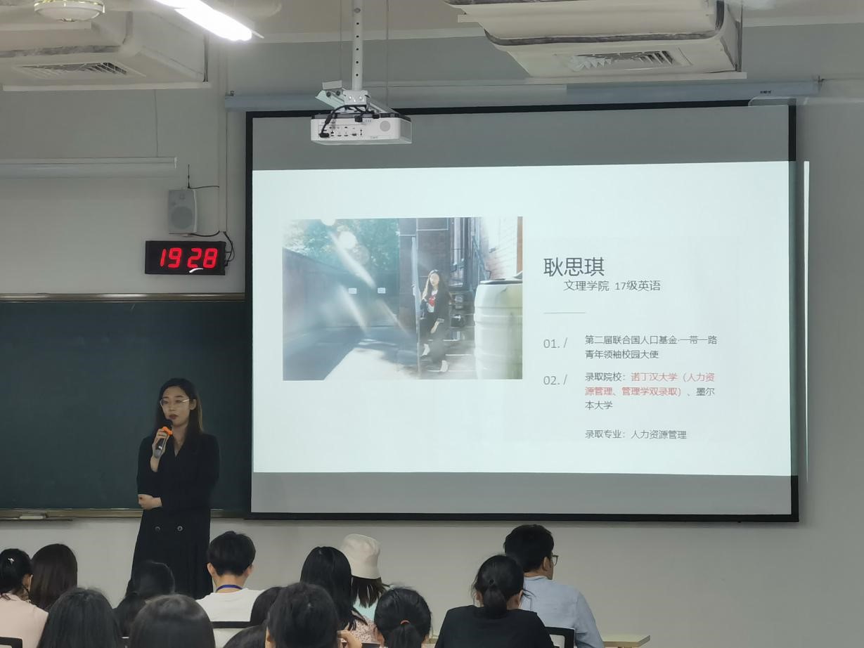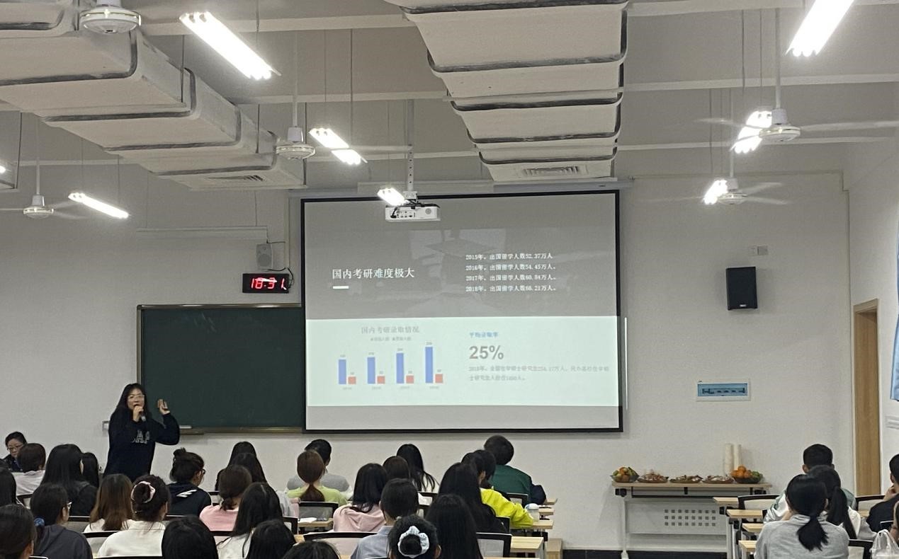 本次活动邀请了桂林校区的留学导师给大家分析了国内外考研的形势,并结合自身的经历给大家介绍了海外知名院校,通过分组讨论让同学们思考了”我想不想出国留学、出国留学的十大理由”。同时也邀请了两名已经成功申请海外名校的学姐分享了自己的成长经历以及趣闻趣事,同学们都非常专注的倾听老师及学姐们的分享,认真思考互动话题,讨论结束,同学们积极踊跃的分享了自己的想法!