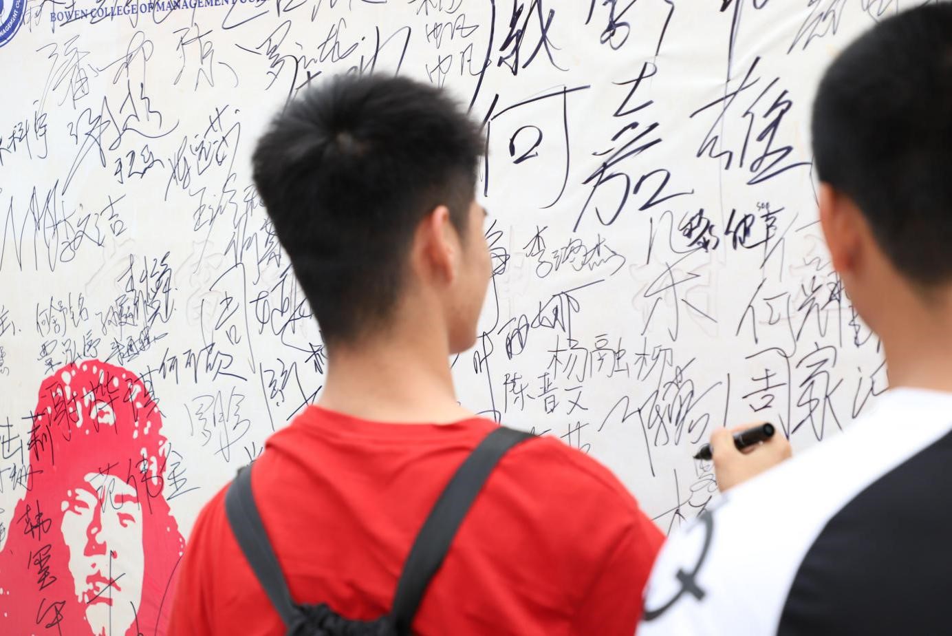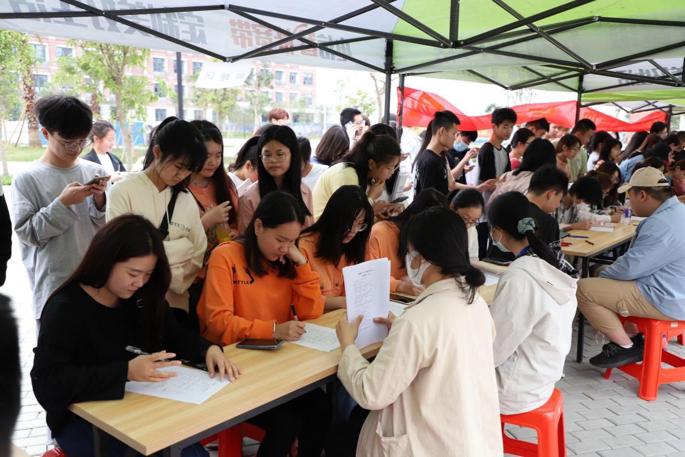 组织活动的同学早早就位,布置现场。参加活动的同学们也纷纷提前来到活动现场,蓄势待发争当第一位答题者。活动开始后,同学专心致志地答题。