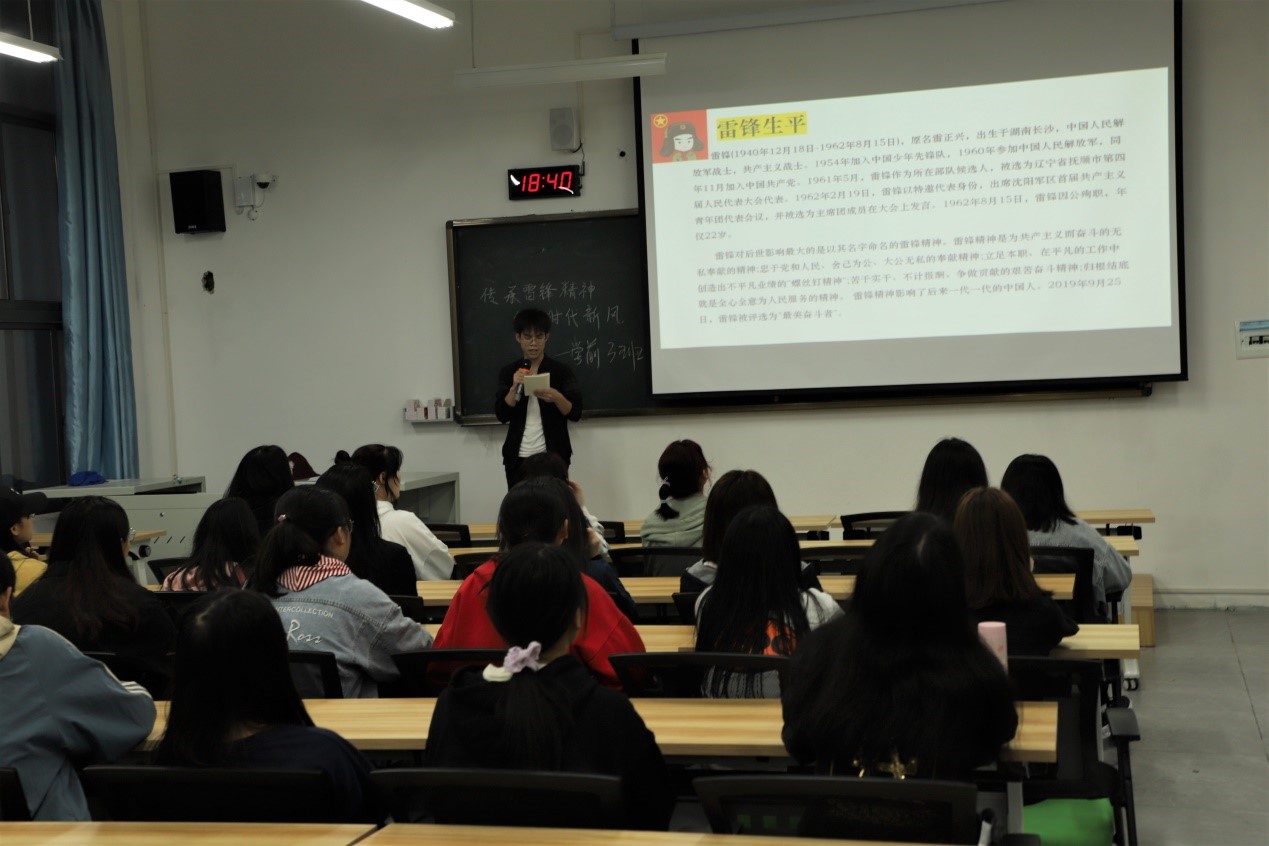 各班团支部开展以“传承雷锋精神·倡导时代新风”为主题的团日活动,学习、践行、传承和发扬雷锋精神,通过主题教育活动,共青团员塑造良好世界观、人生观、价值观,激发青年勇担时代先锋、开拓奋进、建功立业的使命感和责任感,广泛学习先进典型人物事迹,培养勤俭、奋斗、创新、奉献的劳动精神,用雷锋精神助力培育时代新人,发扬艰苦奋斗、勤俭节约的文明传统。