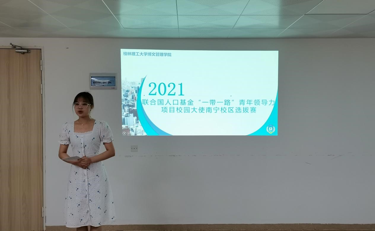 为提高大学生国际视野,增强社会责任感和社会担当,3月31日,第五届联合国人口基金“一带一路”青年领导力项目桂林理工大学博文管理学院校园大使南宁校区选拔赛初赛拉开帷幕。