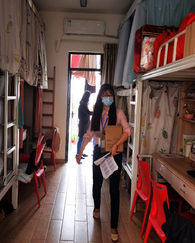 学生事务部主任孙宝会、后勤保障部副主任刘元在检查前做工作部署:一是要规范工作流程,二是要仔细认真排查,三是要做好学生教育工作。