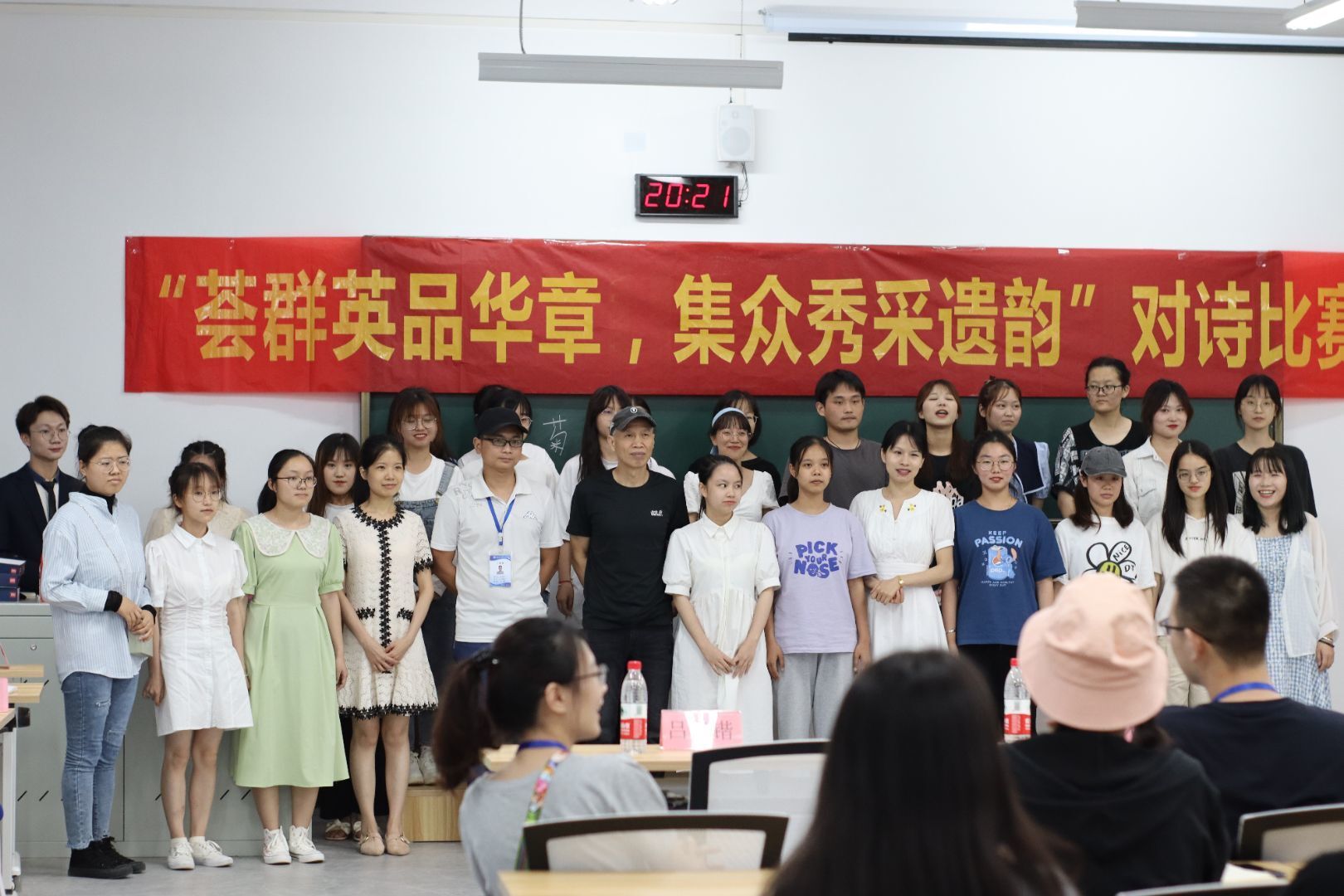 为了激发在校师生对传统文化的热情,进一步增强校园文化氛围,让师生领略古诗词的独特魅力,5月15日晚,南宁校区图书管理委员会(以下简称“图管会”)在教学楼开展了以“荟群英品华章,集众秀采遗韵”为主题的对诗比赛决赛。经过初赛的激烈角逐,共有八个小组进入决赛。南宁校区教学部主任何宝珠、汉语言文学专业教师李贝、教学部老师吕隆锴、图管会指导老师庞瑶出席本次活动。