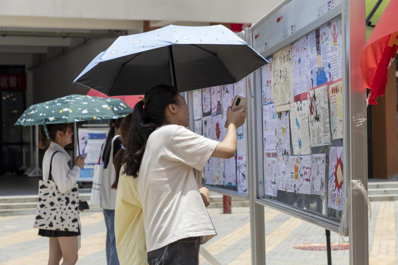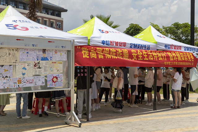 6月17日,南宁校区新闻中心在食堂前小广场展出防诈骗手抄报比赛的优秀作品并开展防诈骗知识竞答活动。此次活动共计300余名学生参加,参赛者通过线下扫码,线上问卷星参与答题竞赛。主办方设计了40个关于防诈骗的题目,参赛者可以了解电信诈骗的常见手段,提高自身的防骗意识。同时,本次竞答还为得分较高的学生发放小礼品。