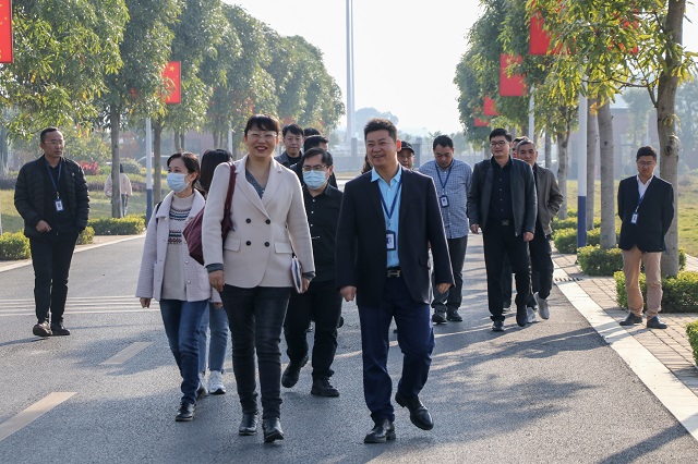桂林信息科技学院一行参观校园艺术岛、教学楼、主景观大道、中心景观湖、体育场、商业街、食堂以及学生公寓。实地考察期间,副校长王加青介绍了校园建设完成情况及各个项目亮点。双方人员就项目设计、施工管理、预算造价、项目报建、招标采购等问题进行交流。