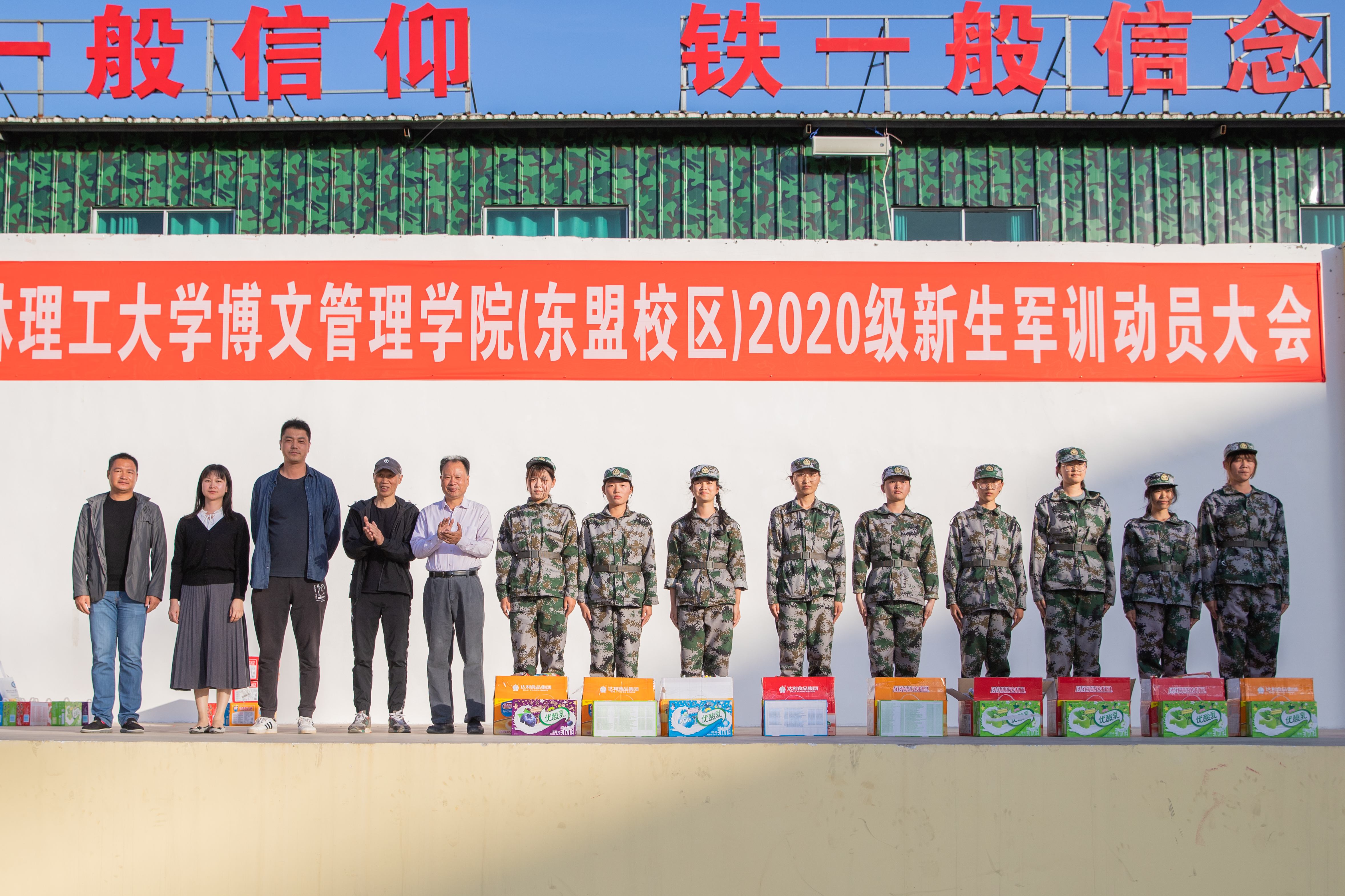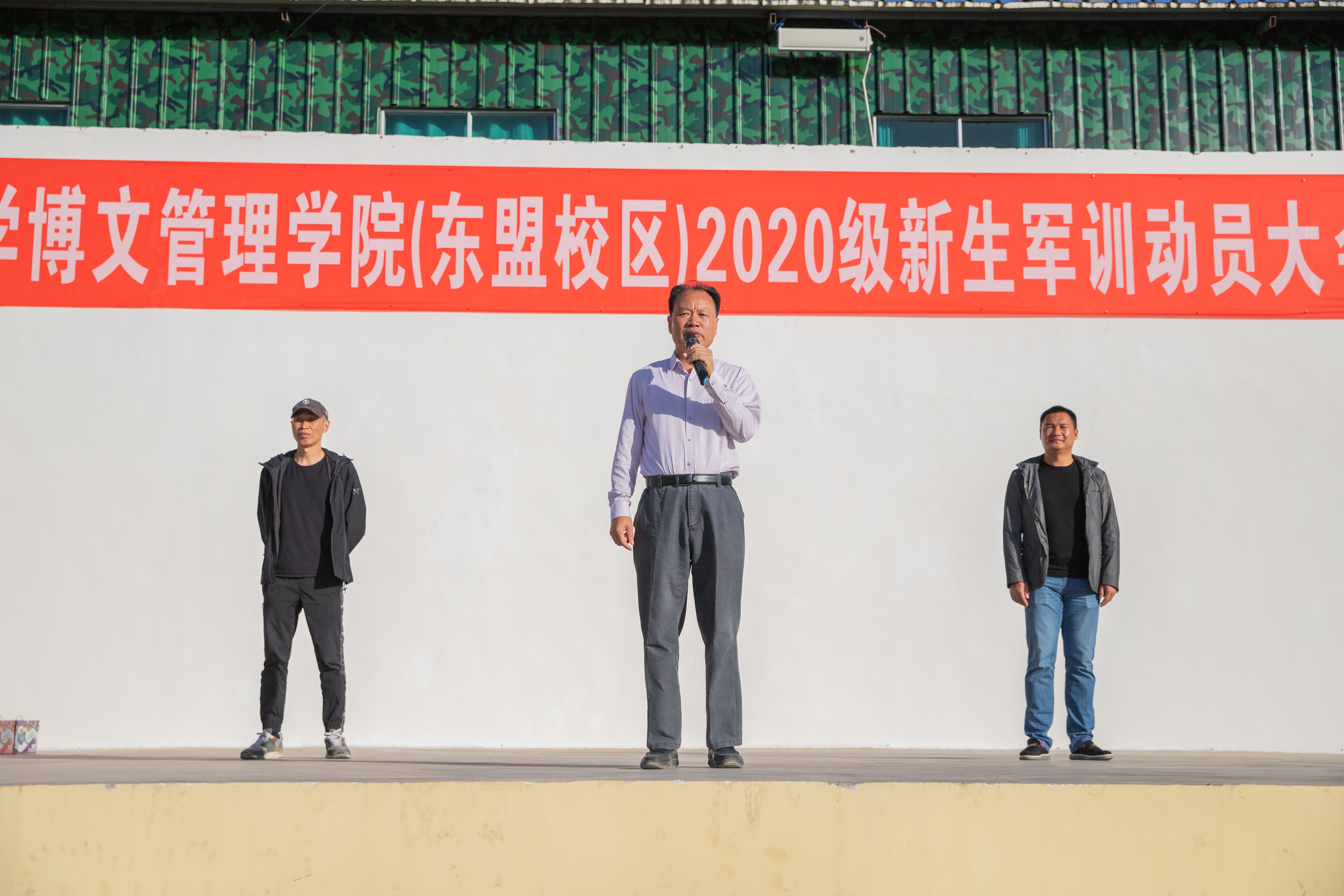 10月22日下午,学校执行董事尹少华赴广西绿邦国防教育训练基地看望南宁校区2020级军训新生,慰问承训教官和带队教师。尹少华执行董事代表学校对教官和带队教师的辛苦付出表示感谢,对新生五天以来的训练成果表示肯定。他还对新生嘱托道,军训是大学生活的第一课,培养了大家不怕吃苦、严守纪律的作风,增强了团队合作的意识,同时也有利于同学们养成良好的生活习惯,并对新生们即将开始的学习生活寄予了殷切希望。