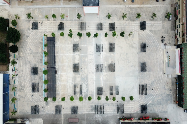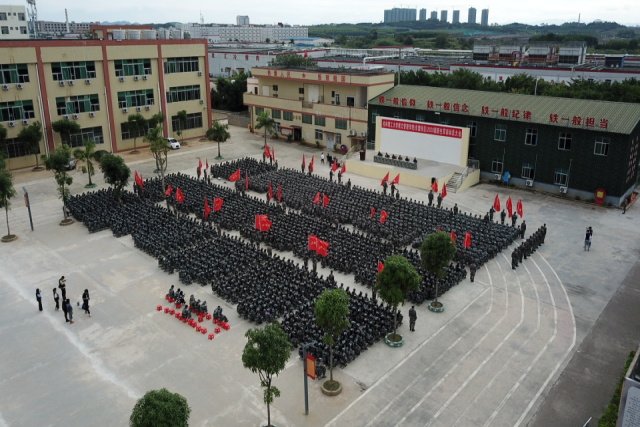 军训动员大会结束,全体新生斗志昂扬投入到军训中,他们将以最坚定的意志面对未来的军训生活。