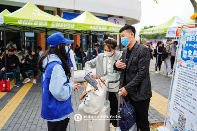 为了让新生和家长们一下车就感受到家的温暖,负责校外车站迎新的志愿者们提前到站,时刻准备迎接新生。我校在南宁各火车站安排了接待新生的志愿者和大巴车,新生和家长们可以安全便捷地到达学校。