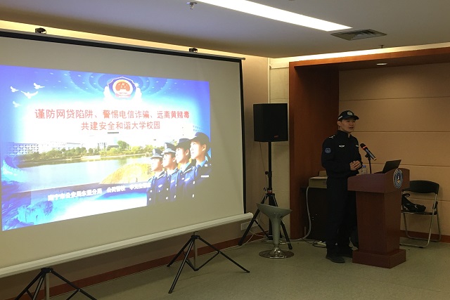 公安局民警从校园防盗、防网贷陷阱、防电信网络诈骗等多个主题切入,通过专题讲座和现场模拟两种形式对学生开展校园安全教育,以提高学生的自我防范意识。预防电信网络诈骗是本次培训活动的重点内容,民警通过列举大量案例,向同学们讲解了常见的骗术及识破诈骗行为的方法和技巧,告诫同学们要时刻加强防范,提醒同学们要对电信网络诈骗高度警觉。
