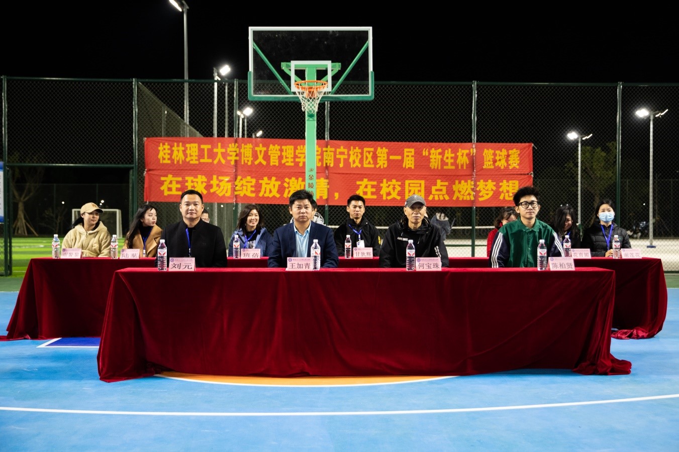 12月3日晚,桂林理工大学博文管理学院南宁校区第一届“新生杯”篮球赛开幕式在学校篮球场隆重举行,副校长王加青,教学部主任,后勤保障部副主任,南宁校区分团委书记,南宁校区全体辅导员及各篮球赛学生队伍参加开幕式。