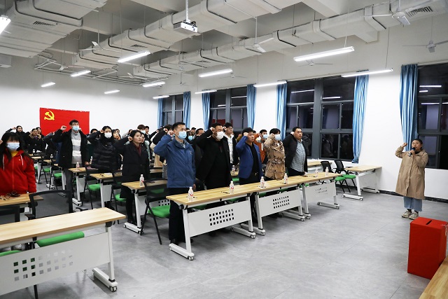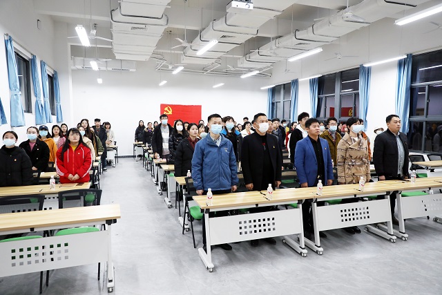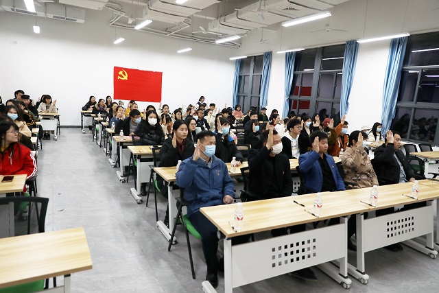 最后,全体党员同志重温入党誓词,南宁校区党总支成立大会暨第一次党员大会在雄壮的《国际歌》歌声中胜利闭幕!