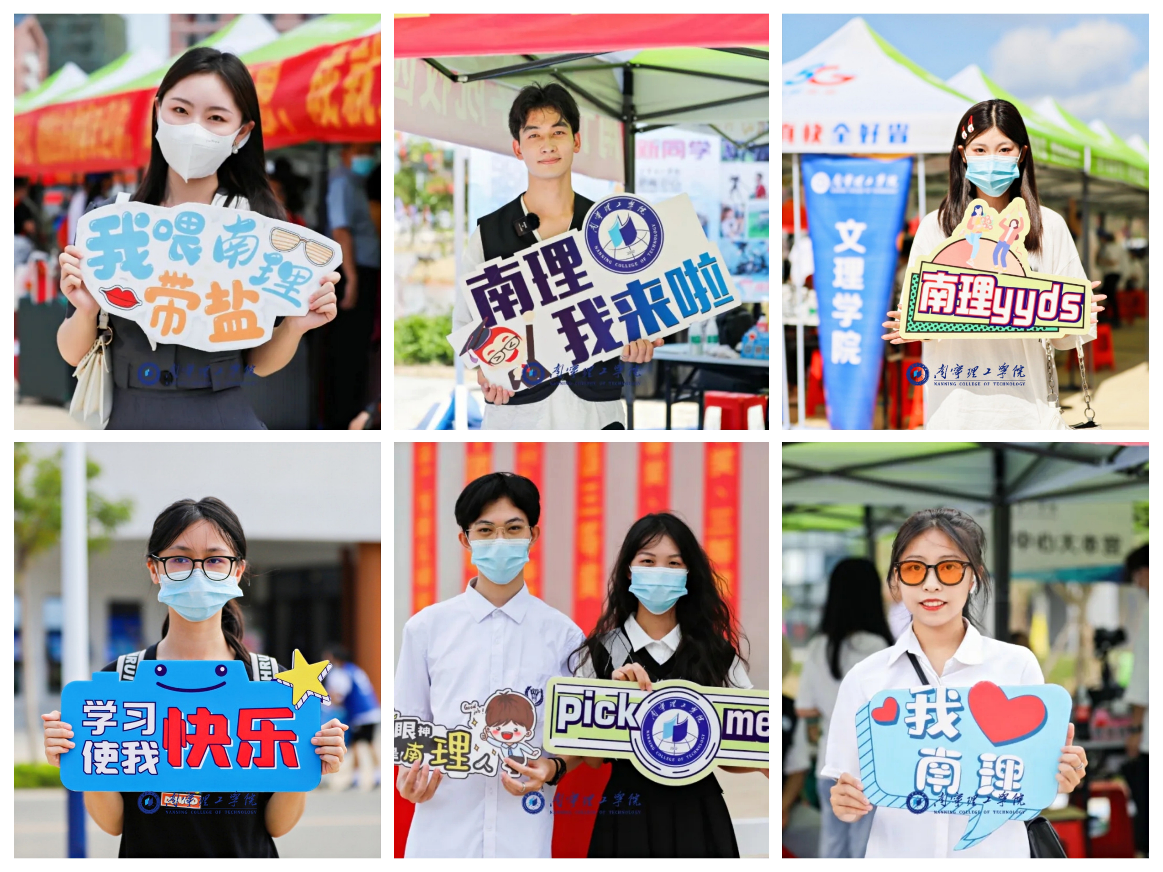 在校园里,随处可见的迎新标语、独具南理特色的景观和指示牌洋溢着温馨与热情,新生们在迎新景观前露出灿烂的笑容,留下一张张合影。