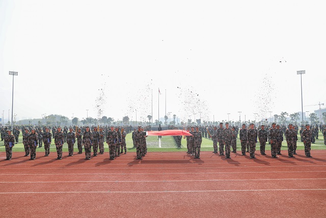 南宁校区2021级新生军训汇演暨总结表彰大会在《中国人民解放军军歌》中圆满落下帷幕。十四天的军训生活画上了句号,但是军训带来的独特回忆与拼搏精神却将永存,相信这定能助新生在此后美好的大学生活中更珍惜青春时光,享受集体温暖,努力拼搏、积极进取,勇做时代弄潮儿。