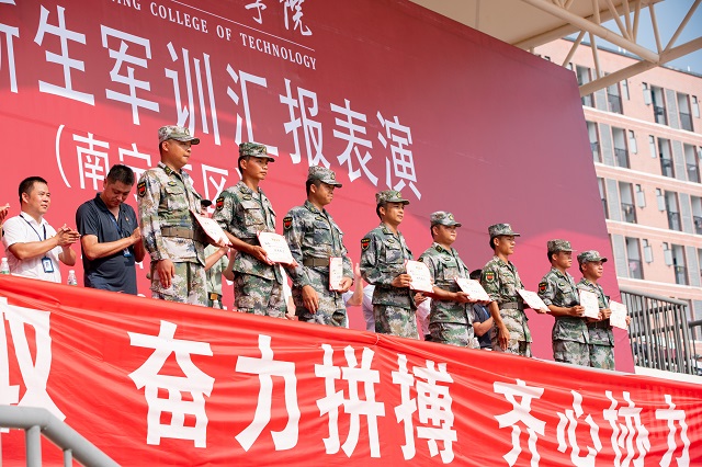 副校长王加青宣读了《关于表彰南宁校区2021级新生军训先进集体和先进个人的决定》。与会领导为优秀连队、优秀学员、优秀指导员颁奖。