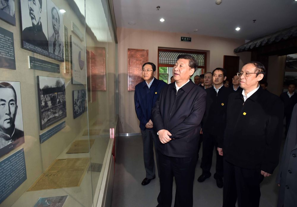 ↑2016年4月24日,习近平在安徽六安市金寨县参观金寨县革命博物馆。