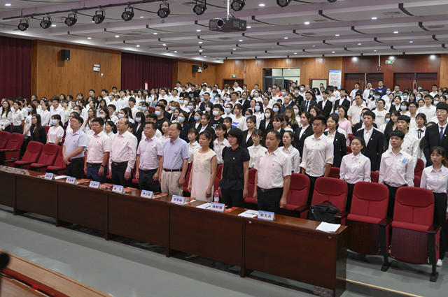 在雄壮激昂的国歌声中,大会拉开帷幕。随后,全体参会党员在金飞书记的带领下,举起右拳庄严宣誓。在这个特殊而隆重的场合上,新党员宣誓铿锵有力,老党员重温入党誓词感慨满怀。