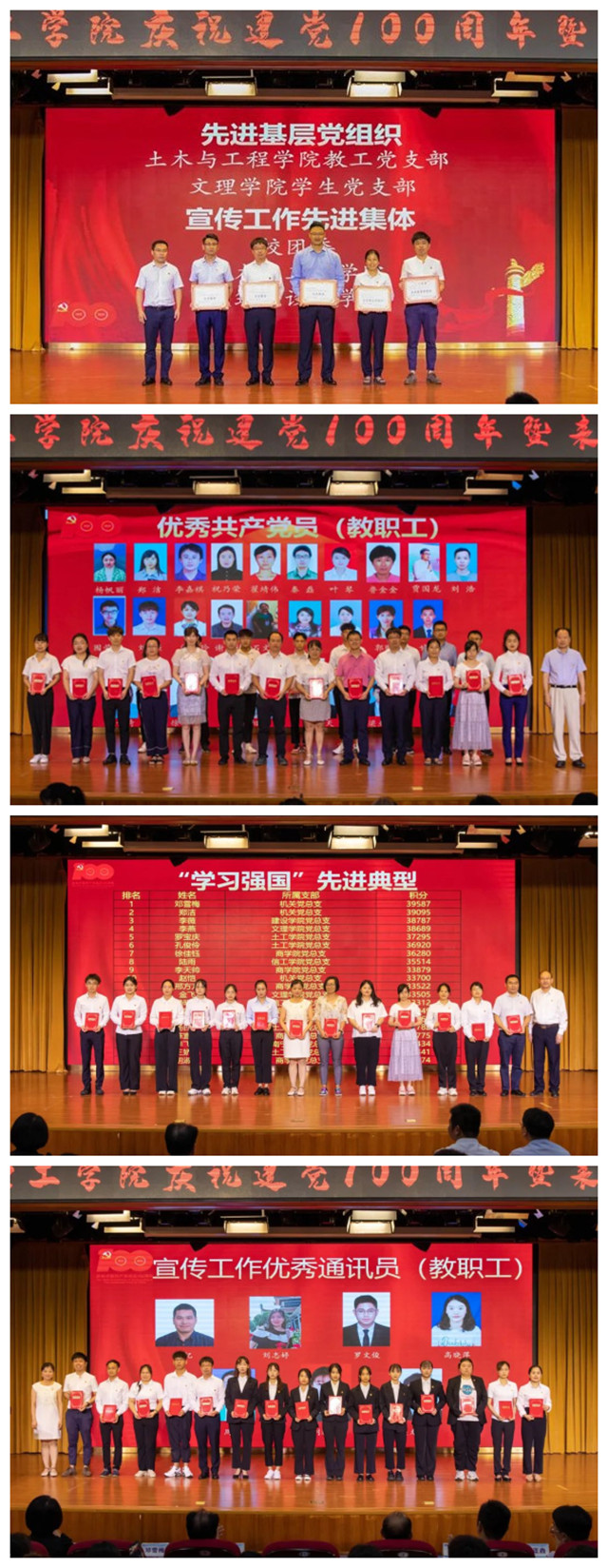 会上表彰了2个先进基层党支部、37名优秀产党员、6名优秀党务工作者、3个宣传工作先进集体、14名宣传工作先进个人及19名优秀通讯员,与会校领导为受表彰者一一颁发了荣誉证书。