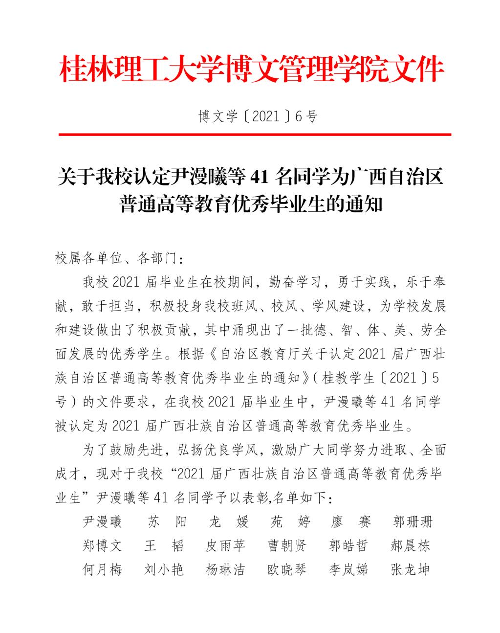 关于表彰桂林理工大学博文管理学院2021届优秀毕业生的决定