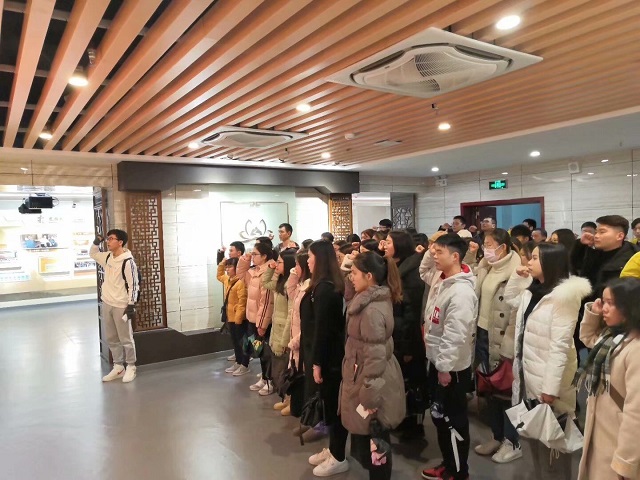 参观活动最后,全体成员在党旗前重温了入党誓词。