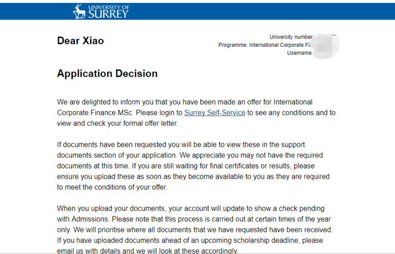 本硕直通海硕班优秀学生。在确定出国想法后,坚持不懈,努力学习雅思,并兼顾学校、社会相关活动,丰富个人本科背景。最终,经过努力申请到了谢菲尔德大学。2020年谢菲尔德大学QS世界排名第78名。