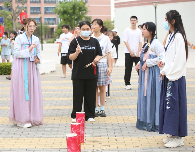 游园会以趣味游戏为主,手工制作为辅,再加上动人古风音乐的表演,使得活动更具感染力。活动设置了“随机歌舞”“猜灯谜”“投壶”“飞花令”“月饼DIY”“自制香囊”等多种传统文化特色游戏,游戏的形式巧妙地将中秋节的来历、中华优秀传统文化有机的结合起来。本次游园活动整合了多项广受师生喜爱的校园文化活动,通过互动体验等形式开展,为师生营造浓厚的节日氛围,让学生在快乐中感受中国传统文化的无穷魅力。