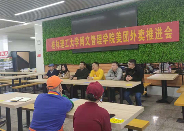 为了给学校师生的校园生活提供更多便利,后勤保卫处于11月26日下午组织各餐饮公司管理人员、各档口和商铺经营户在一食堂一楼召开校园美团外卖推进会。会议由后勤保卫处办公室主任主持。后勤保卫处处长、后勤保卫处饮食服务中心主任、北京三快在线科技有限公司业务经理、美团业务经理参加会议。