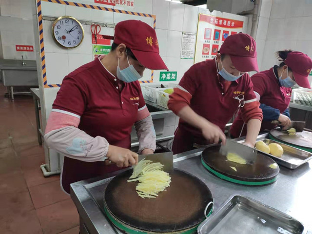 餐饮中心组织食堂员工开展了刀工技能、售卖一勺准比拼项目。