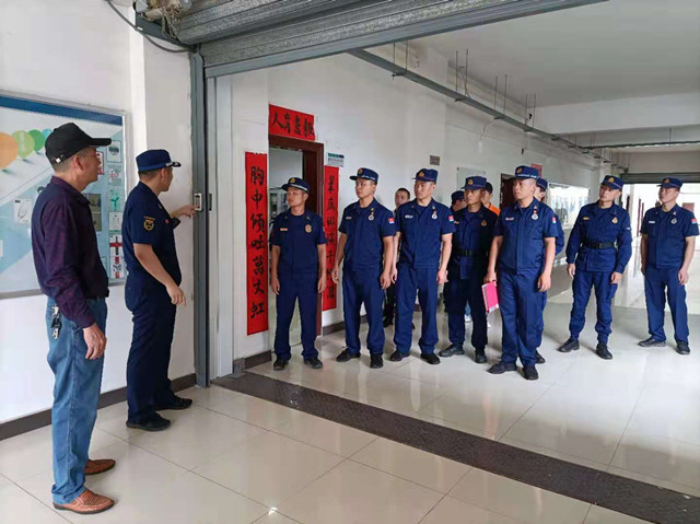 随后,学校校卫队员和消防救援大队队员在后勤保卫处钟处长的带领下,采取点、线、面相结合的方法,对学校各建筑物的位置及结构、内部重点火灾防范部位、火灾易发生部位、内部消防设施的位置、消防水源、疏散通道等进行了实地检查和熟悉,做到对重点部位的底数清、情况明。