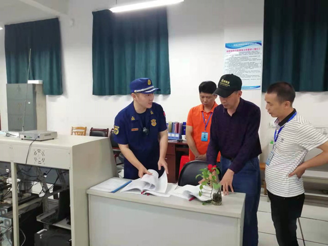 首先,学校后勤保卫处钟处长就我校今年开展的消防安全工作从领导重视、资金投入、消防宣传培训与演练、各类消防安全大检查等方面做了详细介绍。郭鹏大队长查阅了消防会议记录文件、消防安全责任书、巡查检查记录及消防培训演练记录等消防档案。随后,来到我校监控室、微型消防站、教学楼等消防重点区域进行了实地查看,并对我校微型消防站消防队员进行了相关业务培训。