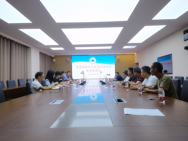 在听取各施工单位对施工进度和完工时间的汇报后,基建办秋玲总监从施工安全、施工进度、文明施工与交叉施工配合等方面对各施工单位进行了总结并提出要求。后勤保卫处钟木生处长就安全有序推进改造维修项目提出五点要求:一是规范做好疫情防控台账,重点加强材料与人员流通环节的管控,充分保障工作人员的防疫安全;二是克服麻痹思想,坚守安全底线,确保施工安全;三是严守合同信誉,保证原材料质量合格、证照齐全,施工过程符合行业质量规范标准和工艺要求;四是树立时间观念,按照程序规范和进度安排表有序施工,攻克效率难题;五是强化队伍管理,保持施工现场良好的作业环境、卫生状况和工作秩序。
