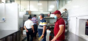 检查开始前,后勤保卫处处长讲解了检查中的注意事项和检查工作的具体流程。本次检查工作分为两大块,分别是食堂就餐区和食堂后厨,从一食堂一楼开始,先是对就餐区进行检查,再到后厨的操作间,由一楼到三楼,之后再到二食堂。待理清具体流程后,后勤保卫处老师与伙管委成员在后厨负责人的带领下,开始了本次的食堂安全大检查工作。检察人员深入到食堂后厨的每一个操作间,分别对后厨的食物储藏室、加工区、餐具消毒区、烹饪区、食物仓库、售卖间、后厨桌面、地面、调料区、食品质量、工作人员是否规范穿戴、后厨的消防通道和消防器材等方面进行了严格的检查。检查中,后勤保卫处老师和伙管委的成员都十分认真和仔细,并对不合格、不规范的地方和事物进行拍照和记录。