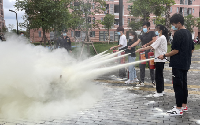 灭火器使用培训过程中,孙鸣翔教官介绍了灭火器使用方法、注意事项,并示范如何使用灭火器。最后,参加培训人员亲自使用灭火器进行灭火演练。