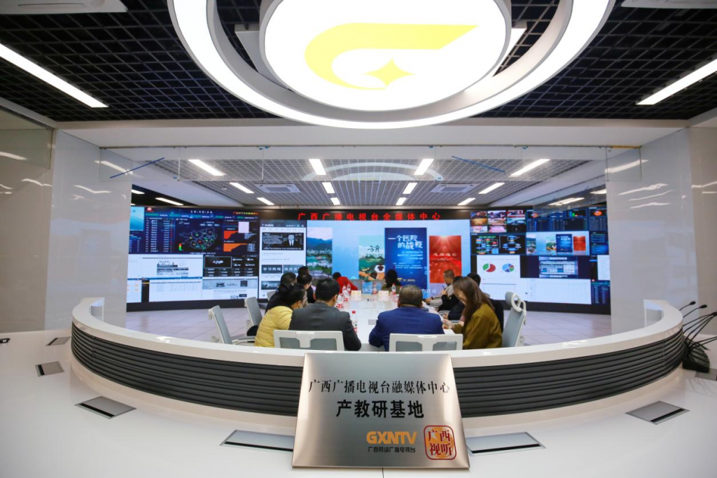 习近平总书记强调,要遵循新闻传播规律和新媒体发展规律,强化互联网思维,坚持传统媒体和新兴媒体优势互补、一体发展,坚持以先进技术为支撑、内容建设为根本,推动传统媒体和新兴媒体在内容、渠道、平台、经营、管理等方面的深度融合。为发展完善南宁理工学院有关新媒体人才的培养体制,提升教师队伍对于媒体融合发展现状的深入了解。2022年12月1日,南宁理工学院大数据与人工智能学院院长周敏、艺术与传媒学院院长陈广明带领相关教职工团队来到广西广播电视台融媒体中心参观、座谈。