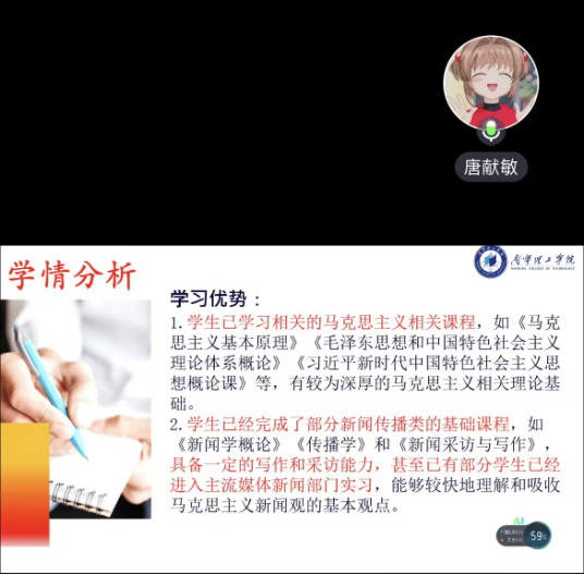参与本次磨课的五位教师分别来自网媒教研室和数智教研室,他们所磨课程各具特色:唐献敏老师的《马克思主义新闻观》、王昭老师的《新媒体产品设计与项目管理》、汤婉茹老师的《非线性编辑》、张三妞老师的《计算机网络》以及李长海老师的《机器学习》。这些课程不仅覆盖了专业知识点,也体现了学院对于教学内容深度与广度的重视。