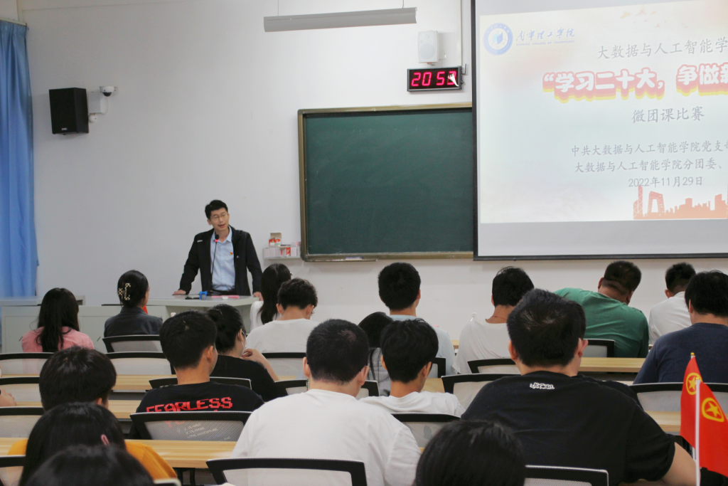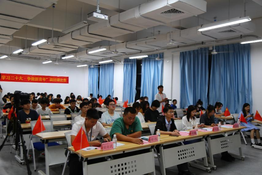 为深入学习习近平新时代中国特色社会主义思想,贯彻落实党的 二十大精神和习近平总书记在庆祝中国共产主义青年团成立 100周年大会上的重要讲话精神,学习党领导下的中国青年运动的光辉历程,进一步夯实学院共青团基层基础,为团干部搭建展示自我、提升能力、交流思想的平台。我院于2022年11月29日17:00在A4204教室开展“学习二十大·争做新青年”微团课比赛。本次活动的评委老师由院长周敏,分团委书记李江燕,专任教师曾达、张明川、辅导员梁业武担任。