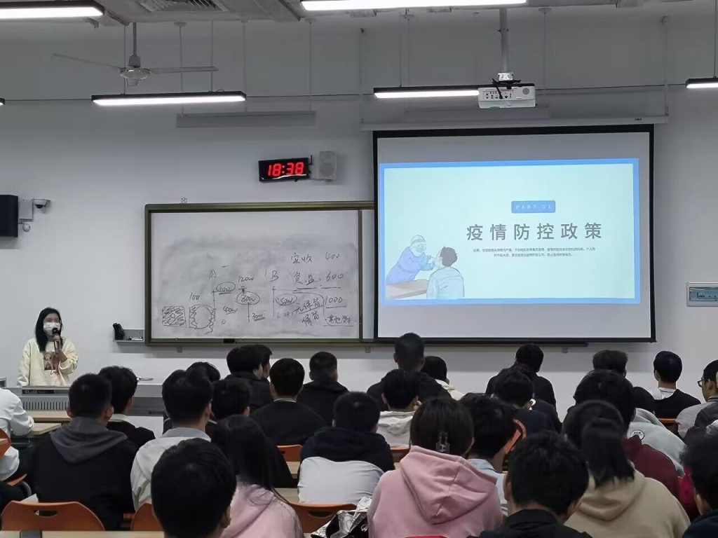 为进一步落实中央政治局常委会召开会议听取新冠肺炎疫情防控工作汇报,研究部署进一步优化防控工作的二十条措施,科学做好疫情防控工作, 11月30日-12月1日,我院辅导员开展疫情防控主题班会,向同学们详细的解读疫情防控二十条的相关规定和具体防疫措施。充分认识进一步优化防控措施是为了防控更加科学精准,认识到党中央为了做好人民群众生产生活服务保障,切实满足疫情处置期间群众基本生活需求,保障看病就医等基本民生服务,尽力维护正常生产生活秩序和坚决打赢常态化疫情防控攻坚战的决心。