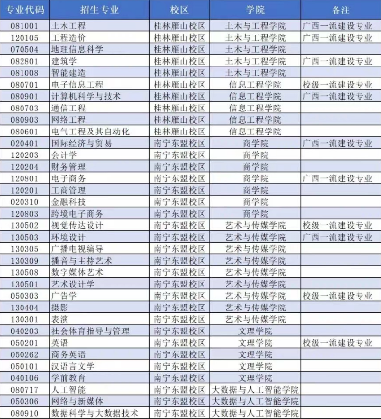 以下是南宁理工学院所设专业表,欢迎有合作意向的单位前来洽谈!
