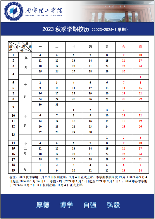 南宁理工学院2023秋季学期校历