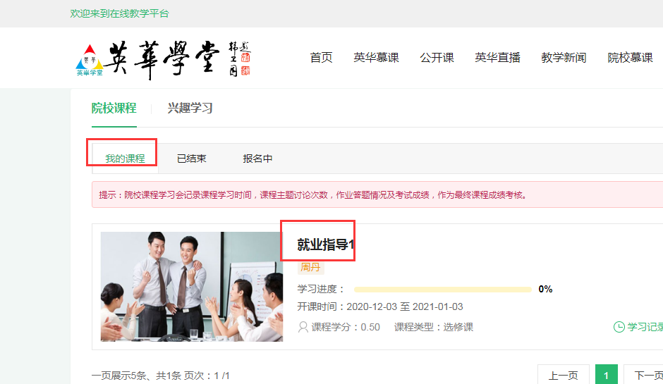 本学期公共选修课将在“英华学堂”平台中完成教学,现将有关事项通知如下: