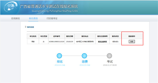 (一)点击“确定”——再点击“查看”即可看到报名信息。